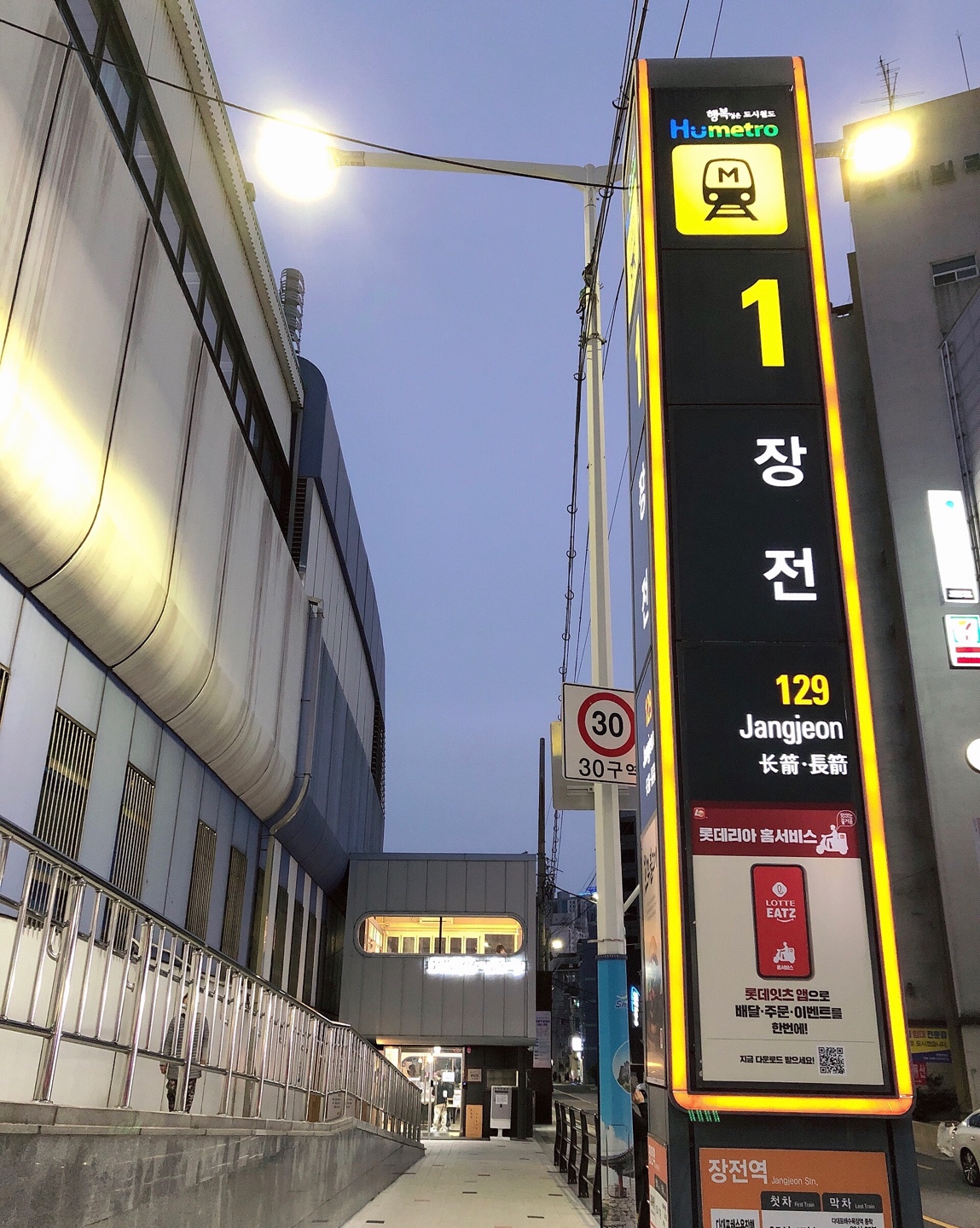 좋아하는 노래 세곡을 고르고 골라 들으며 걸어가면 나오는 거리에 있는 금정 온천천 작은 도서관! 장전역 1번 출구 앞에 있는 이 도서관은 직장인들의 퇴근 시간에도 이용할 수 있도록 19시까지 운영을 하고 있답니다.