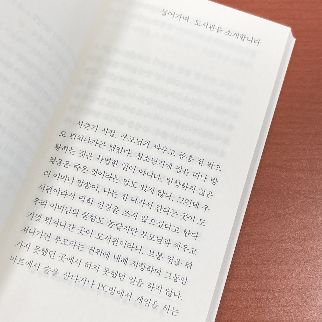 저 또한 국어국문학과와 문헌정보학과를 공부하면서 도서관을 자주 드나들었었고, 밤새 그곳에서 책을 읽거나 공부한 적도 많았어요. 그래서인지 최근의 저에게 도서관은 공부를 위한 자료가 보관되어있는 곳 혹은 공부하는 곳으로 인식되어 있었지만, 이 책을 읽고 과거 제가 도서관을 자주 와 놀이터처럼 재밌게 놀고 책을 읽었던 기억을 떠올릴 수 있었습니다.