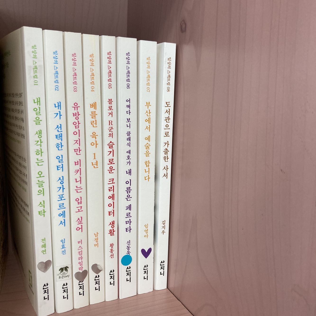 각 작가들의 경험을 에세이로 쓴 ‘일상의 스펙트럼’ 시리즈는 책 크기가 작고 얇기도 두껍지 않아, 많은 독자가 쉽게 꺼내어 읽어볼 수 있는 이미지라고 생각합니다. 에세이 장르인지라 내용도 어렵지 않아, 『도서관으로 가출한 사서』를 기반으로 시리즈의 다른 도서들도 한 번씩 읽어보고자 합니다.