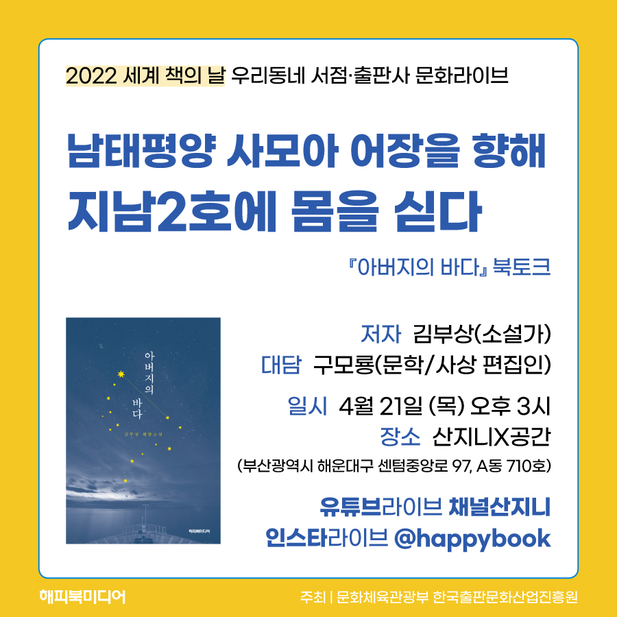 | 김부상 소설가와 함께 한 책의 날 :: 『아버지의 바다』 라이브 북토크 (0) | 2022.04.25 |