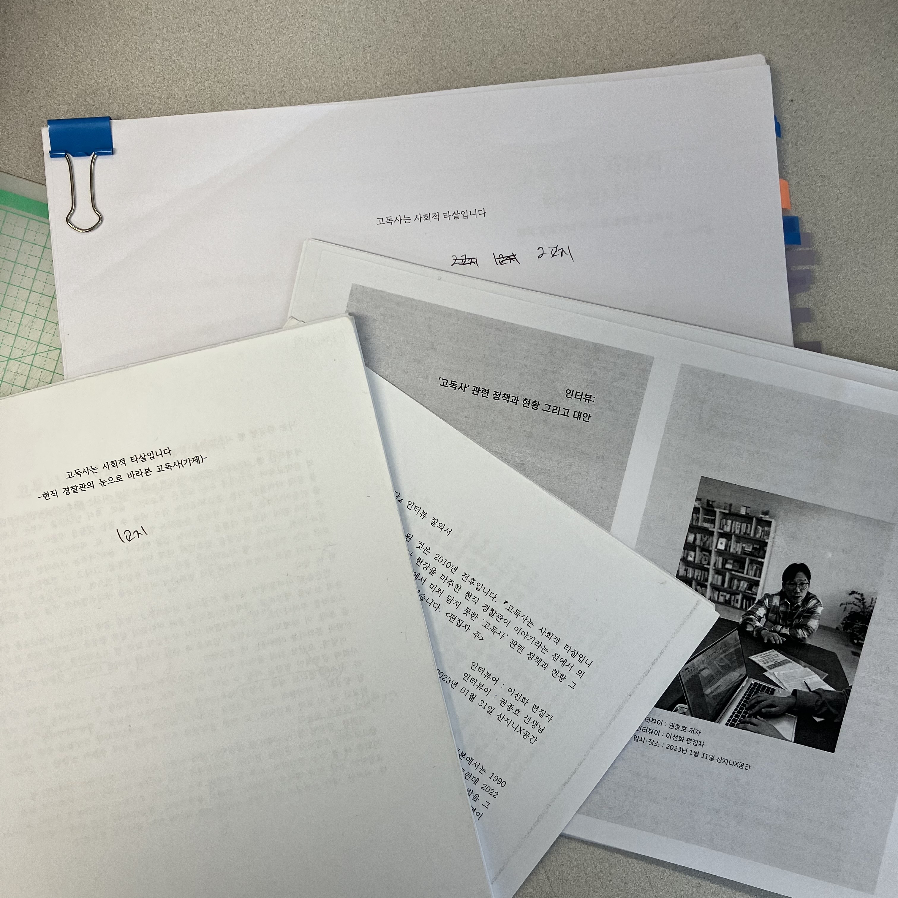 이 책의 경우 빠른 출간을 가장 염두에 두고 작업을 진행했습니다. 정부 차원에서 최초로 발표한 ‘2022년 고독사 실태조사’로 고독사에 대한 사회적 관심이 높아졌기 때문입니다. 그리고 ‘국내 최초’ 현직 경찰관의 고독사 에세이라는 타이틀을 놓치고 싶지도 않았습니다.