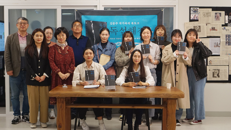 작가의 향후 활동 계획에 대한 이야기를 마지막으로 북토크가 끝났습니다. 1900년대를 배경으로 한 소설을 준비하고 있다는 반가운 소식을 들을 수 있었는데요, 더불어 작가가 잘 내세우지 않았던 악인을 작품에서 그려보고 싶다는 바람을 슬쩍 내비치기도 했습니다. (김문주 작가가 그리는 악인이라니, 정말 기대가 됐습니다!) 『독섬해전』을 쓰는 동안 이사부와 사랑에 빠졌었다고 말하며 작가는 『독섬해전』 독자 여러분도 책을 통해 그와 같은 감정을 느끼기를 바란다고 마지막 인사를 전했습니다.