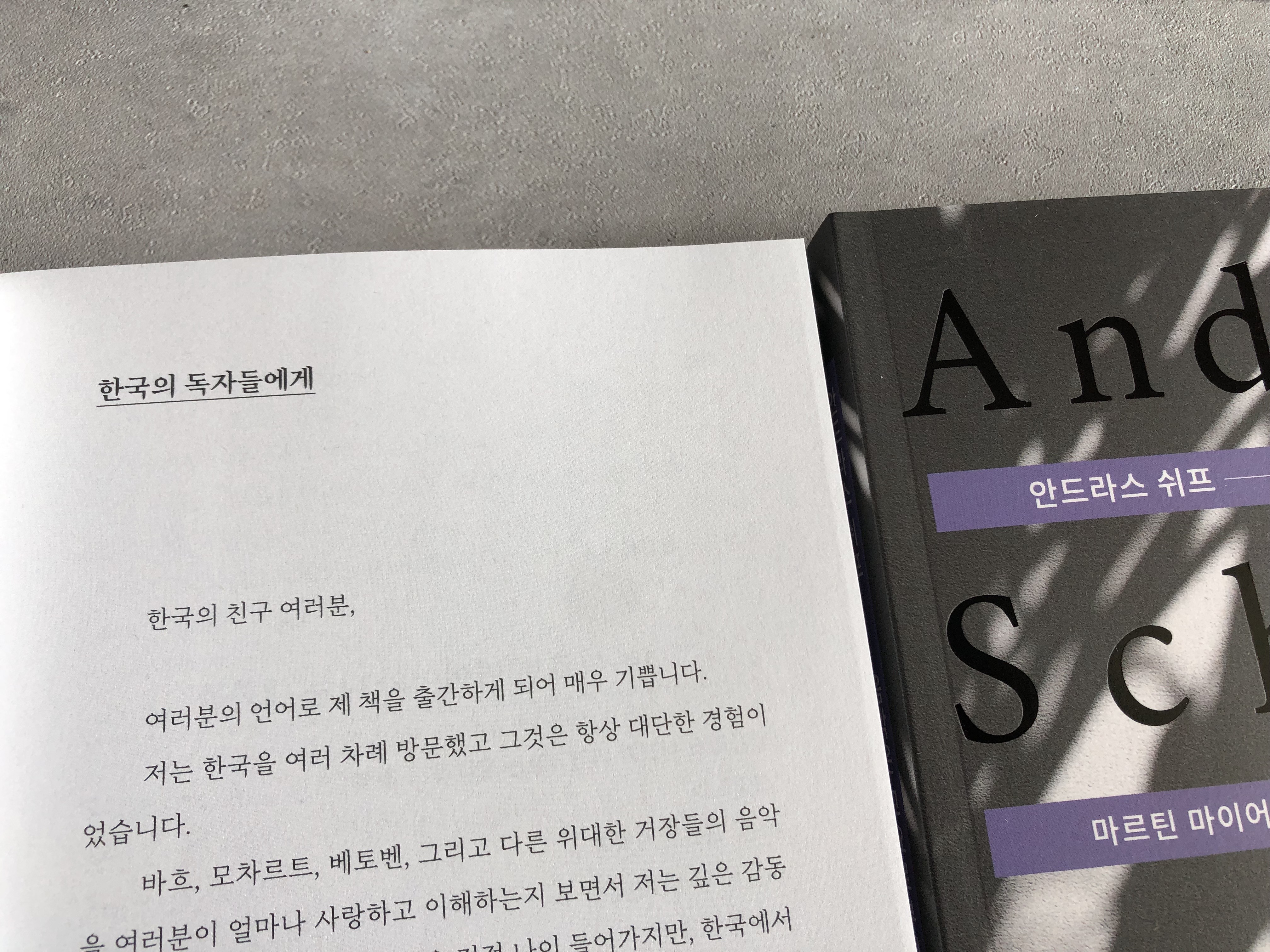 우리 시대의 가장 중요한 피아니스트 중 한 명으로 꼽히며 클래식 애호가들의 애정을 한 몸에 받는 안드라스 쉬프의 책이 국내 처음으로 출간되었다. 2017년 독일어로 출간되었던 이 책은 음악 저널리스트 마르틴 마이어와의 대화와 안드라스 쉬프가 그간 여러 지면에 발표한 에세이로 구성되었다. 대화 전반부는 음악 전반에 대한 쉬프의 깊이 있는 생각들로 채워져 있다. 그가 생각하는 좋은 레퍼토리, 더 나은 연주 연습에 대한 견해, 곡에 적절한 악기로 연주하는 것의 중요성, 실내악에 대한 애정, 젊은 음악가를 교육하는 일, 동시대 음악과 청중, 그리고 비평가에 대한 생각 등 쉬프의 음악적 세계를 이해할 수 있는 중요한 단서들이 그의 입을 통해 생생하게 전달된다.