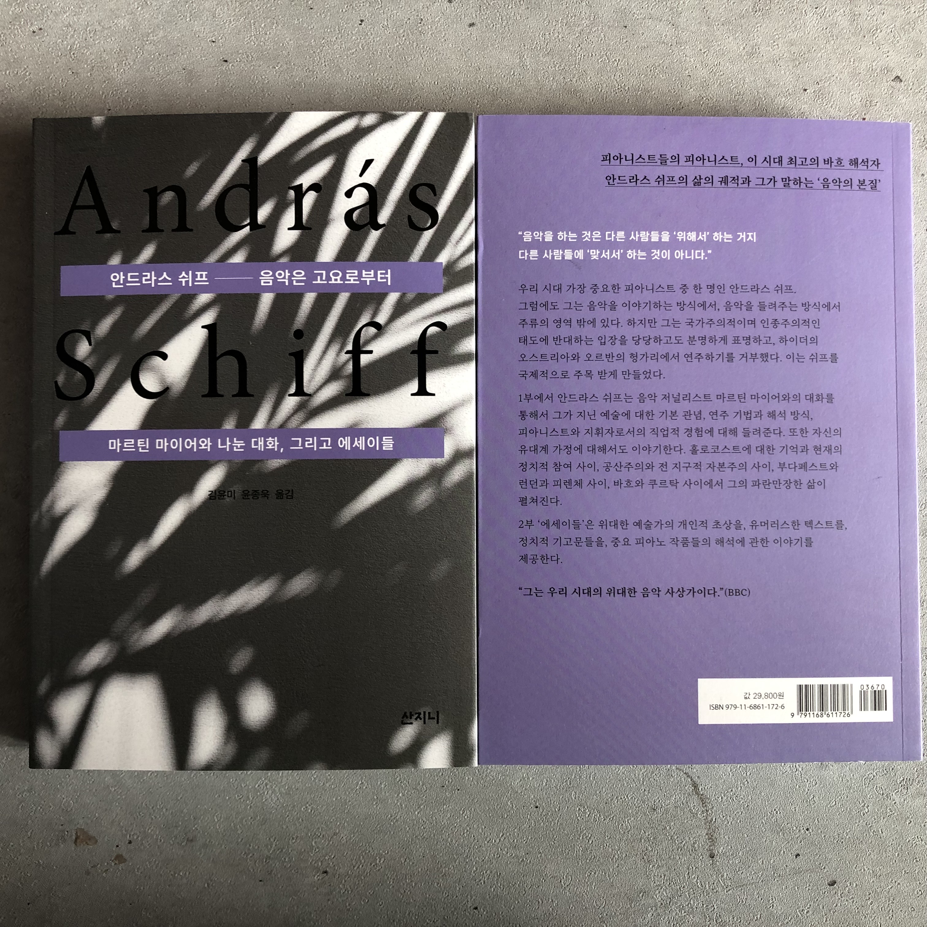 우리 시대의 가장 중요한 피아니스트 중 한 명으로 꼽히며 클래식 애호가들의 애정을 한 몸에 받는 안드라스 쉬프의 책이 국내 처음으로 출간되었다. 2017년 독일어로 출간되었던 이 책은 음악 저널리스트 마르틴 마이어와의 대화와 안드라스 쉬프가 그간 여러 지면에 발표한 에세이로 구성되었다. 이 책을 통해 시대의 한계와 제약 속에서도 묵묵하게 자신의 길을 걸어온 한 피아니스트, 그리고 한 사람의 여정을 찬찬히 따라가 보자.