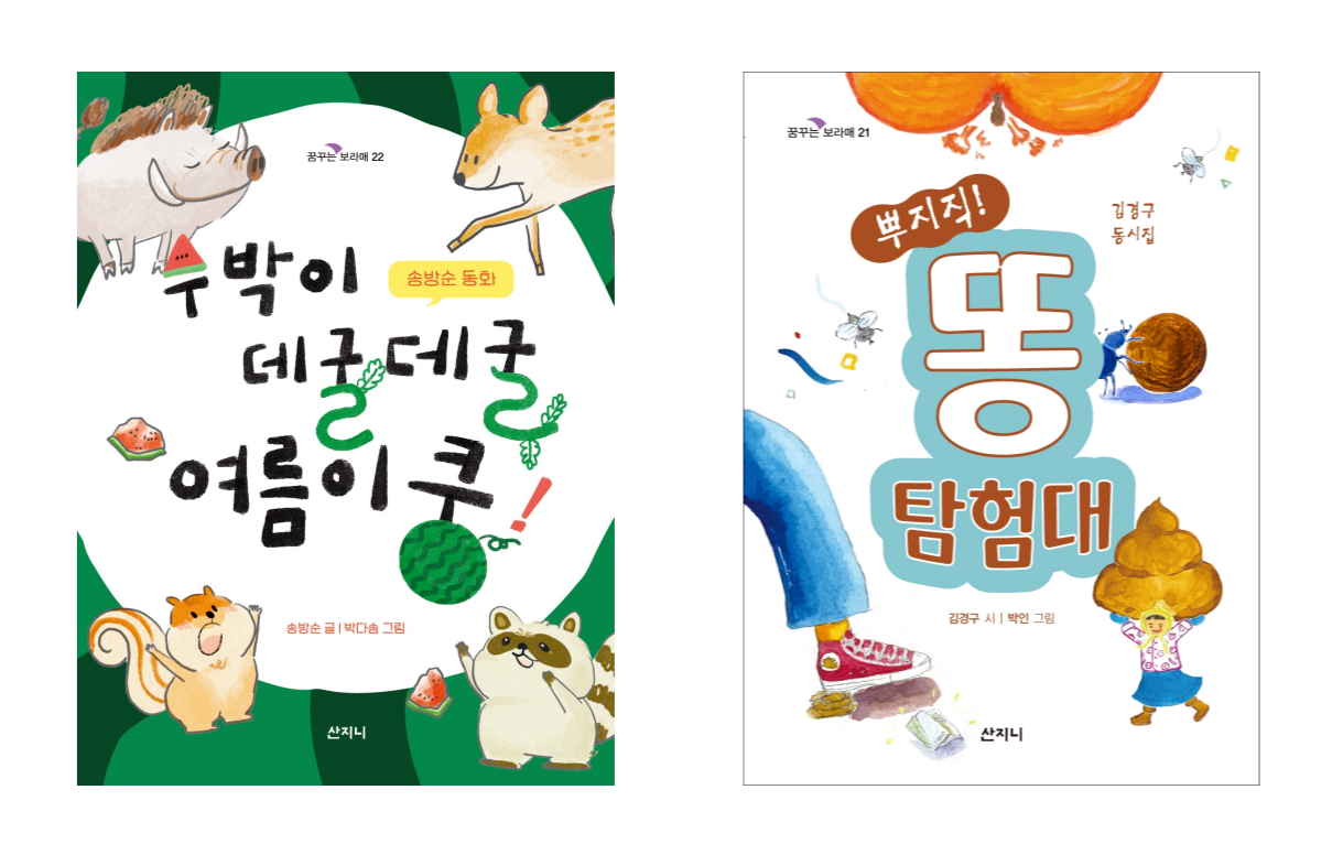 수박의 정체를 추리하는 숲속 친구들의 이야기, <수박이 데굴데굴 여름이 쿵!>과 한국문화예술위원회 문학나눔에 선정된 <뿌지직! 똥 탐험대>. 이로써 꿈꾸는 보라매 시리즈가 20번대를 넘어서고 있네요.
