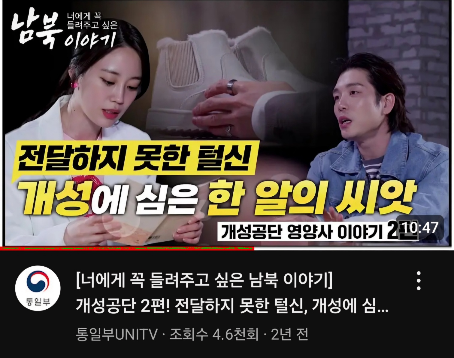 통일부 공식 유튜브에 올라온 [너에게 꼭 들려주고 싶은 남북 이야기] 개성공단 영양사 이야기 1편, 2편입니다.