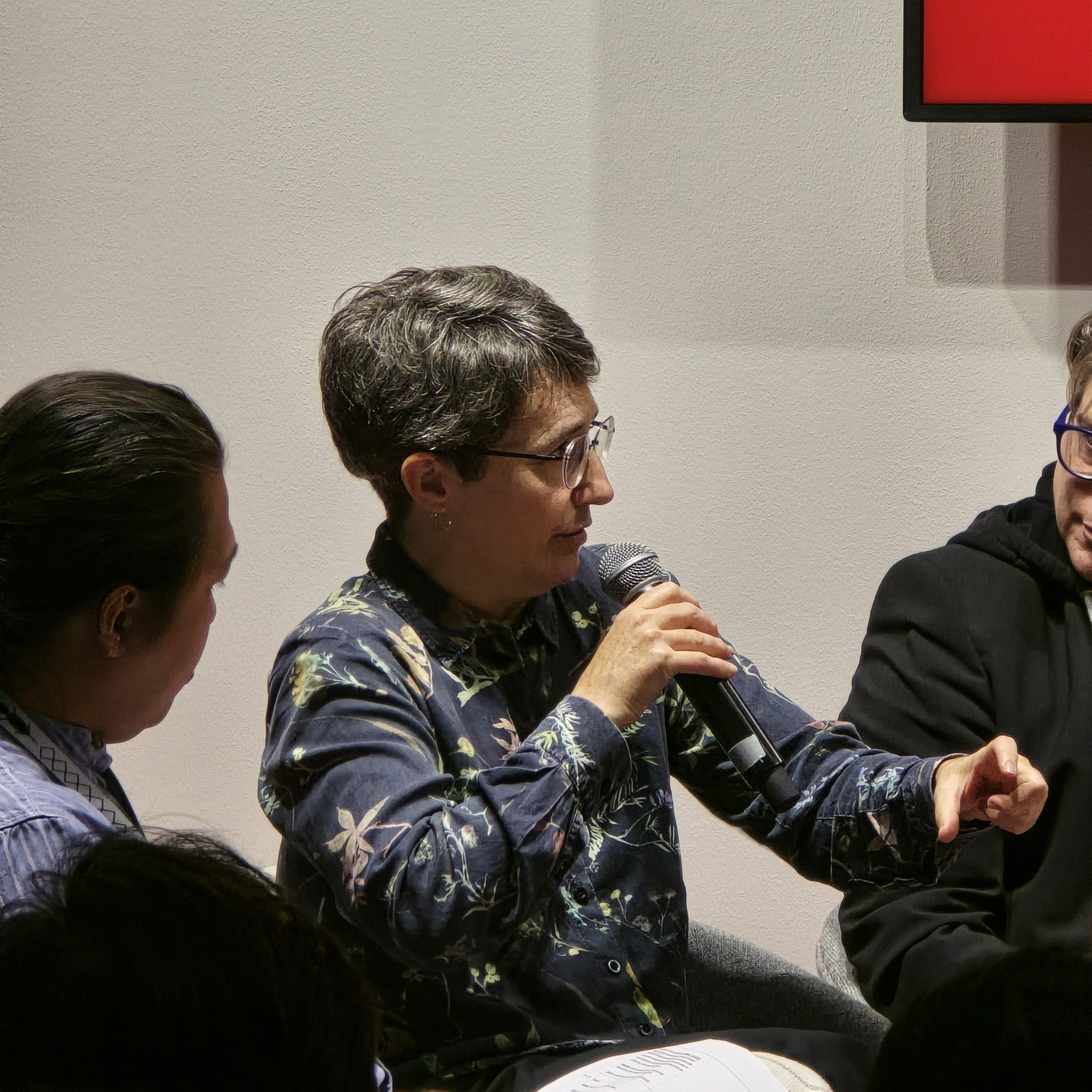 <빌헬름 텔 인 마닐라>와 <심지층 저장소>의 저자 아네테 훅 선생님이십니다. 프랑크푸르트 세미나 프로그램에서 발언 중이시더라고요. 익숙한 목소리가 'Sanzini' 출판사를 언급하시길래 눈이 휘둥그레져서 달려갔더니 그곳에 선생님이!