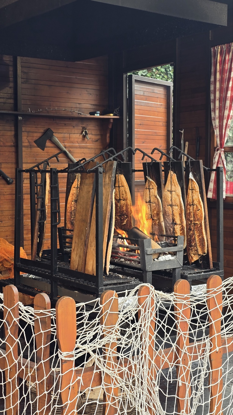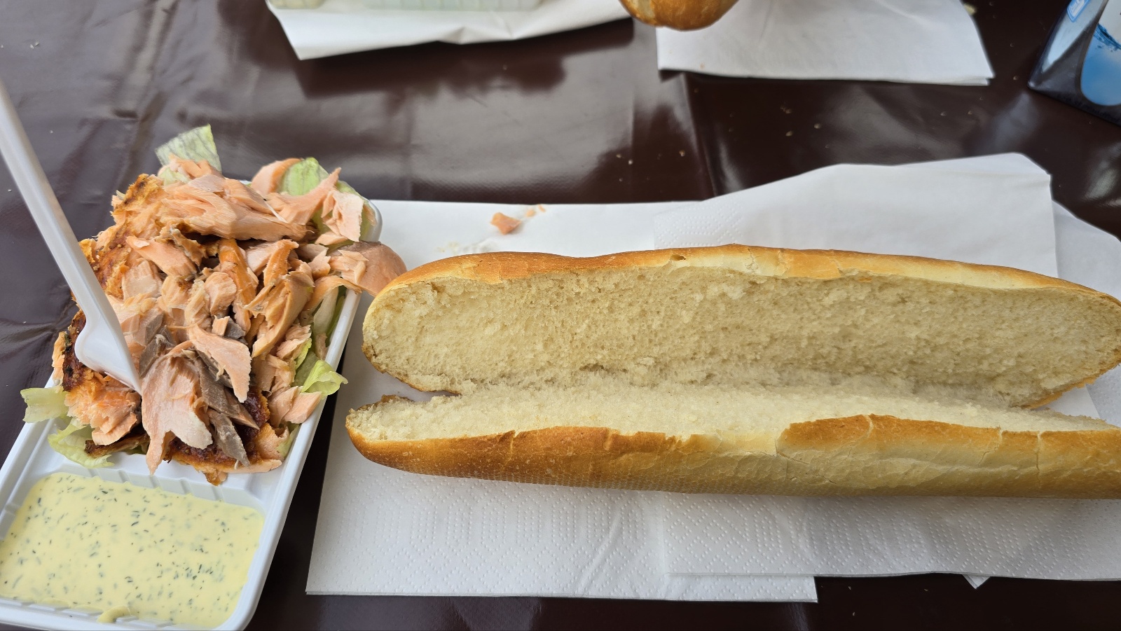 도서전 광장에 있는 아주 맛있어 보이는 음식점으로 저를 데려가주셨는데요, 이곳의 메뉴는 구운 연어 샌드위치였습니다.