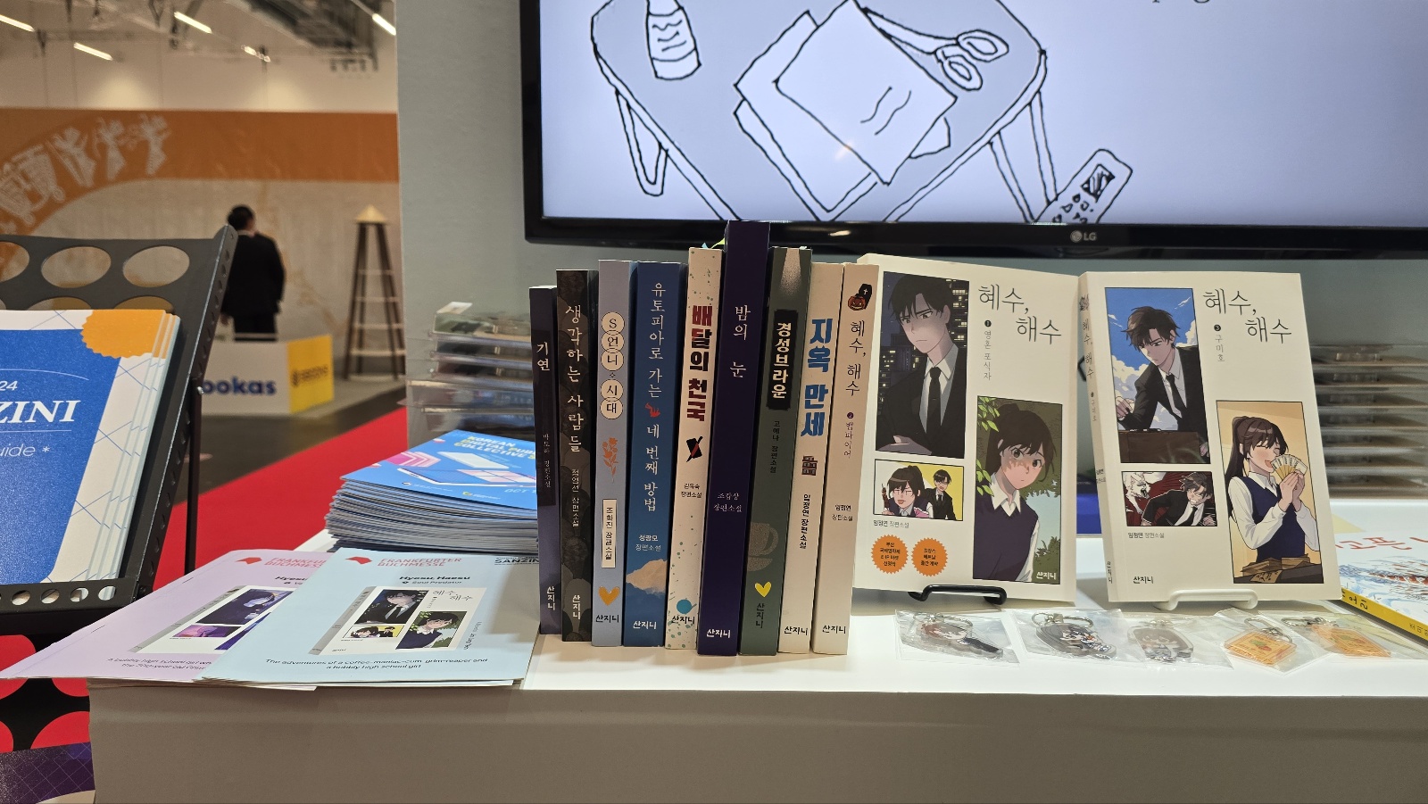 산지니는 이번에 주력 작품으로 <혜수, 해수>를 선정했습니다. 프랑스와 베트남에 수출되었고 최근 4권이 출간된 <혜수, 해수>는 해외 바이어에게 호평을 받아왔거든요. 역시나 이번 도서전에서도 <혜수, 해수>에 대한 관심이 뜨거웠습니다 :)