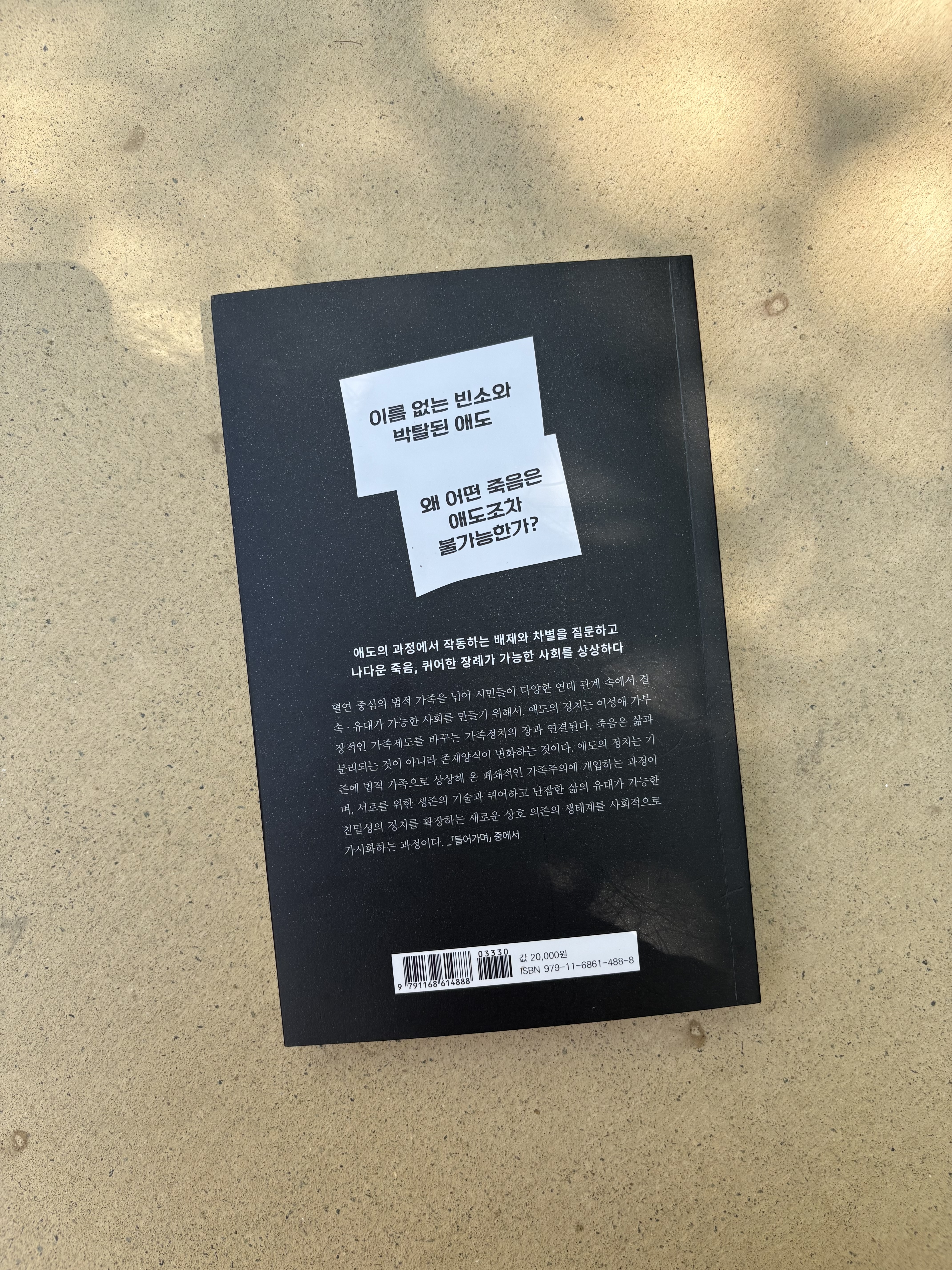한국 사회에는 혼인 또는 혈연으로 맺어진 법적 가족에게 삶과 죽음을 의존하도록 하는 제도가 작동한다. 법 제도와 관행상 한 사람의 죽음 이후 모든 권리가 법적 가족에게 자동으로 위임되는 이러한 사회에서, 사회적 소수자는 죽음과 장례 절차를 둘러싼 애도의 전 과정에서 차별을 경험할 수밖에 없다. 특히 퀴어와 장애인 등 소수자들이 혈연가족과 불화할 경우, 그들의 의사와 무관하게 장례가 혈연가족에게 일임되는 일은 곧 존엄하게 살 권리, 존엄하게 죽을 권리와 연결된다. 인권과 평등의 관점에서, 죽음을 둘러싼 애도의 전 과정은 곧 정치적이고 사회적인 의제가 된다.
