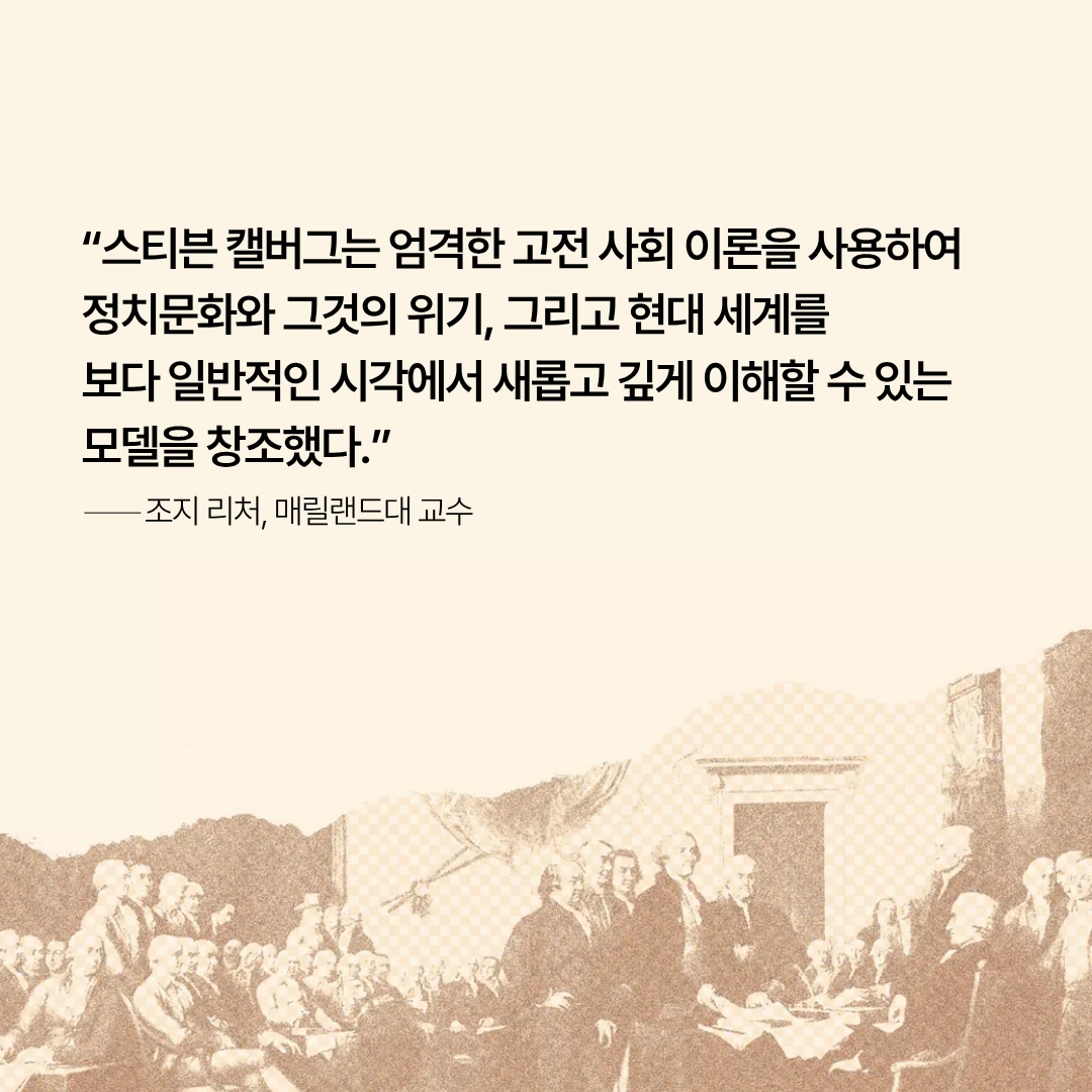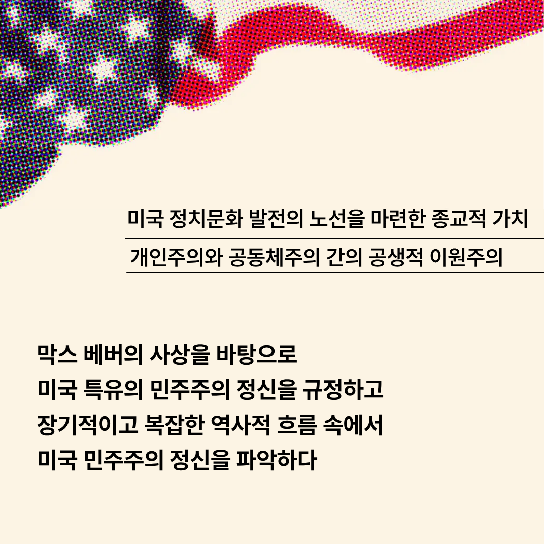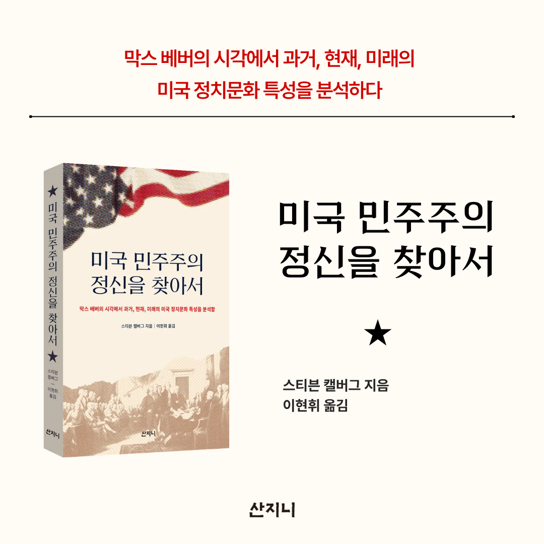 『미국 민주주의 정신을 찾아서』의 저자 스티븐 캘버그는 이러한 진단이 주로 미국 민주주의의 ‘현상’에만 집중할 뿐, 그 근간을 이루는 민주주의의 관습은 간과했다고 반박한다. 그리고 막스 베버의 관점을 토대로 오늘날 미국 정치문화의 구체적 윤곽을 드러내고, 민주주의의 미래에 대한 낙관적 해석을 제시한다. 저자는 베버의 사상을 바탕으로 미국 특유의 민주주의 정신을 규정하고, 장기적이고 복잡한 역사적 흐름 속에서 미국 민주주의 정신을 파악한다.
