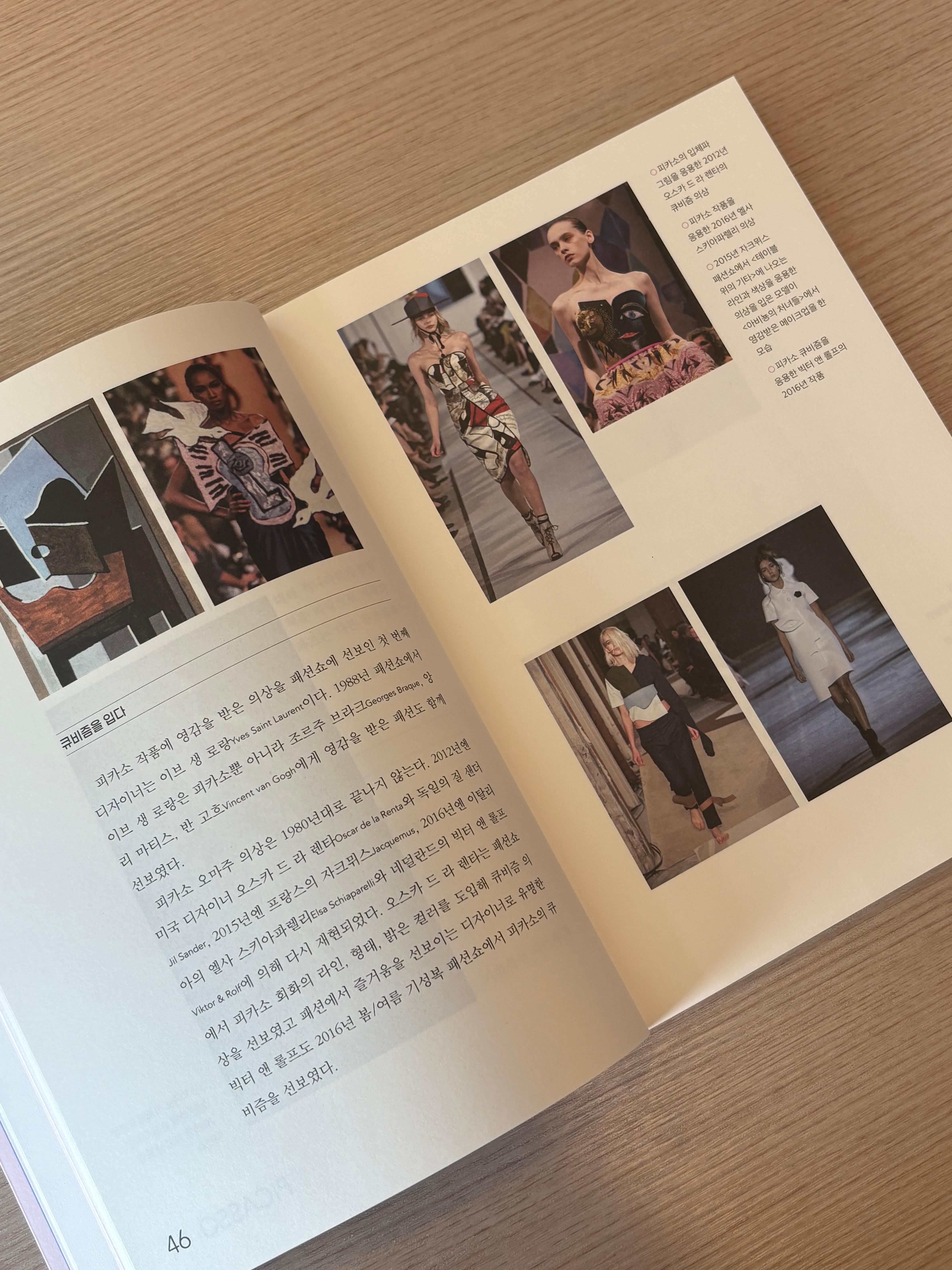 고흐의 꽃 그림은 패션디자이너들이 특별히 사랑하는 주제이다. 고흐는 1886년 파리로 거처를 옮기면서 2년간 40점이 넘는 꽃병 연작을 그렸다. 제레미 스캇, 이브 생 로랑, 멀리비 자매 등이 고흐의 꽃 그림에서 영감 받은 패션으로 런웨이를 가득 채웠다. 피카소는 기하학적 패턴과 형태, 콜라주 의상, 과장된 형태로 패션계에 영향을 주었다. 특히 피카소 그림의 과장된 형태는 ‘파워 숄더’라는 이름으로 패션 트렌드에 커다란 영향을 미쳤다.