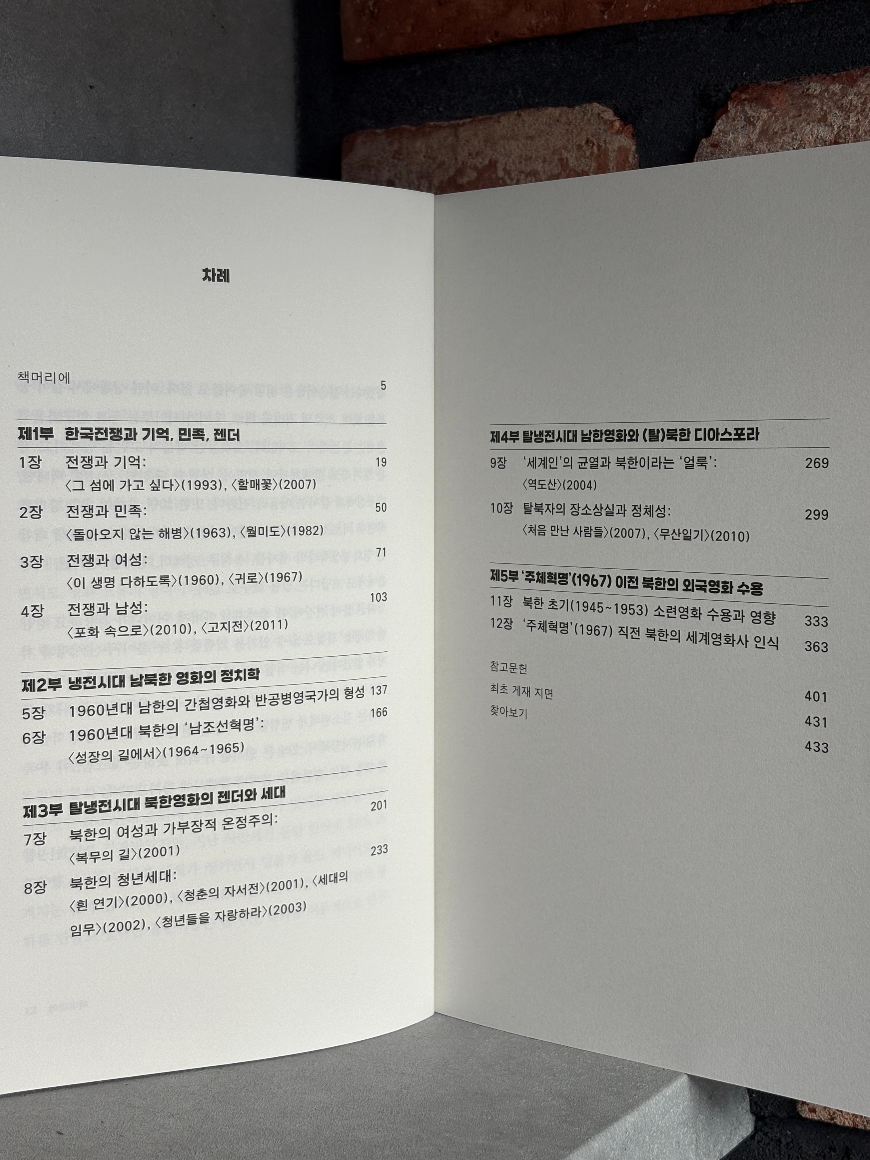 지은이 : 정영권 쪽수 : 444쪽 판형 : 148*225 ISBN : 979-11-6861-481-9 93680 가격 : 38,000원 발행일 : 2025년 9월 22일 분류 : 예술/대중문화 > 영화/드라마 > 영화이론/비평 예술/대중문화 > 영화/드라마 > 영화사 예술/대중문화 > 영화/드라마 > 한국영화 대학교재/전문서적 > 예체능계열 > 연극/영화 사회과학 > 통일/북한관계 > 북한학 일반 역사 > 테마로 보는 역사 > 문명/문화사 사회 정치 > 정치/외교 > 북한/통일 |