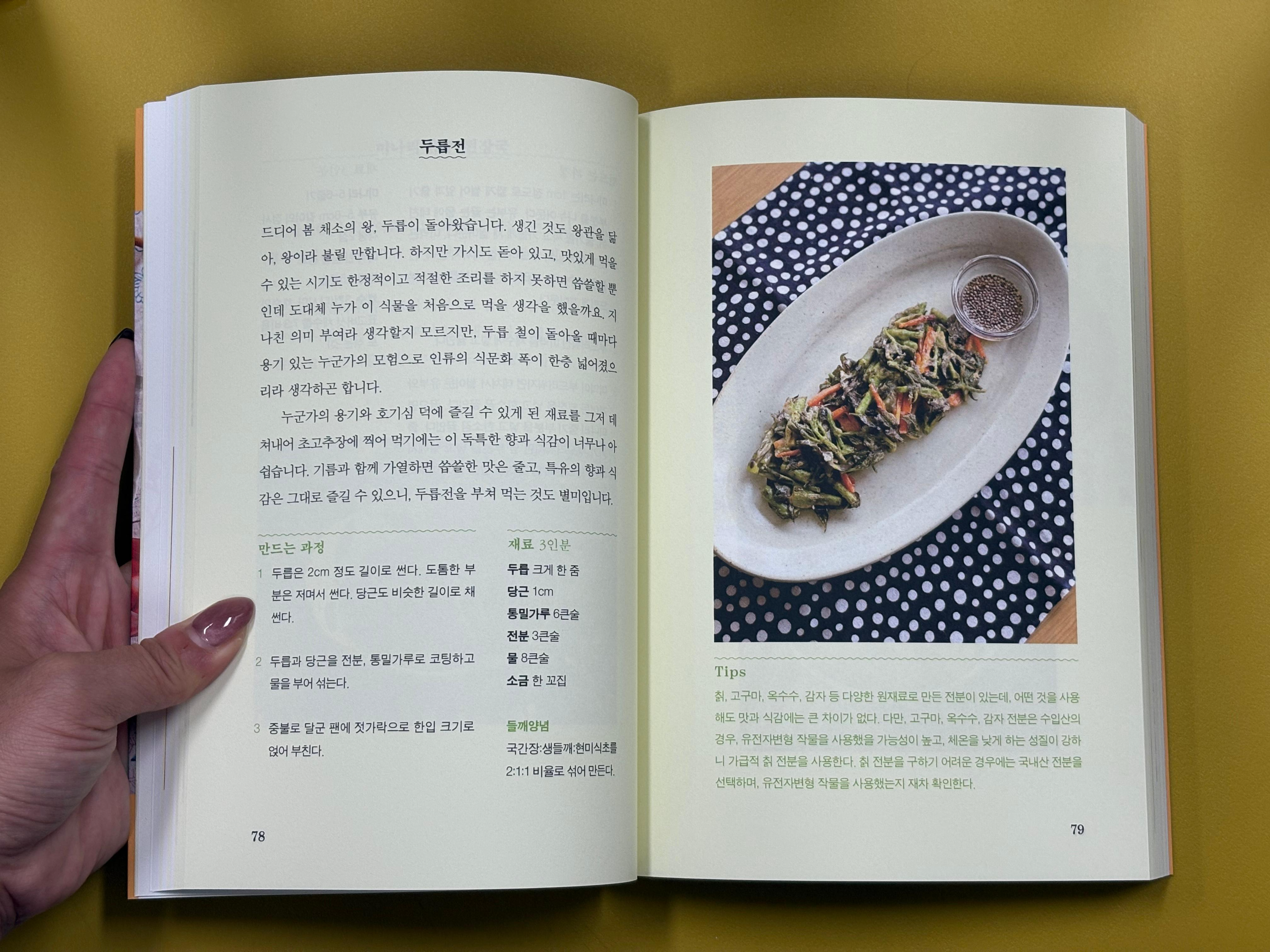 저에게 제철 채소를 담은 매일의 식사는 도시의 삶에서도 계절의 변화를 느끼며 사소한 행복을 느낄 수 있게 해주는 존재입니다. 냉이를 발견한 날은, 이제 곧 올 봄 생각에 조금 설레고, 햇양파가 나올 무렵이면, 가로수에 초록잎이 가득해져 회색 도시에도 녹음이 우거질 가까운 내일을 생각합니다. 지금이 아니면 즐길 수 없는 것들을 맛보며, 내가 걸어가고 있는 순간을 기억하고, 그 속에서 발견한 작은 설렘으로 살아갈 힘을 얻습니다.