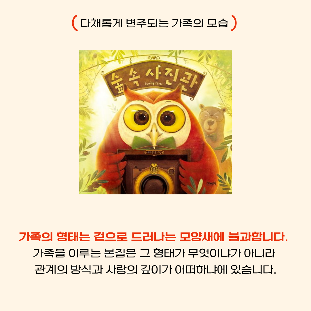 가족은 가장 가깝지만 동시에 가장 알기 어려운 존재입니다. 이 책은 가족학을 전공한 그림책 테라피스트 방현주 저자가 가족을 주제로 한 그림책들을 선별해 가족의 복잡한 감정과 다층적인 의미를 풀어냅니다. 부부 관계에서 시작해 부모됨의 여정, 나아가 가족의 상실과 회복력까지. 당연해서 더 어려운 가족 이야기들이 간결한 그림책의 이미지 속에 어떻게 담겨 있는지 따라가다 보면 항상 옆에 있어서 당연한 존재인 가족을 새롭게 바라보게 될 것입니다.