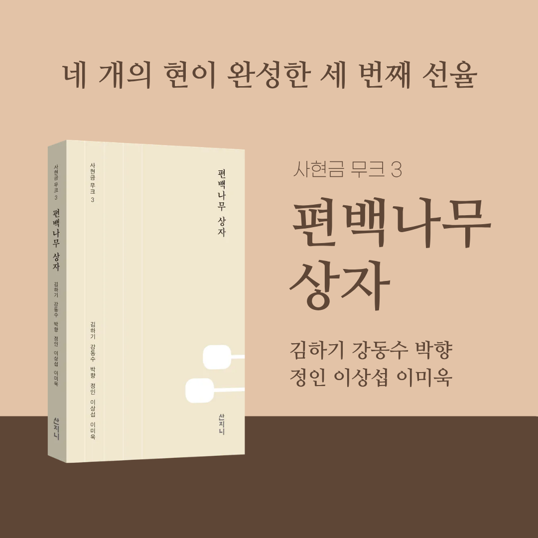 소설 동인 ‘사현금’이 세 번째 무크지 『편백나무 상자』를 발간했다. 이번 무크지는 김하기, 강동수, 박향, 정인 네 명의 사현금 동인에 이상섭, 이미욱이 참여해 죽음과 상실, 소외와 단절 그리고 연대와 구원의 의미를 다각도로 탐구한다.