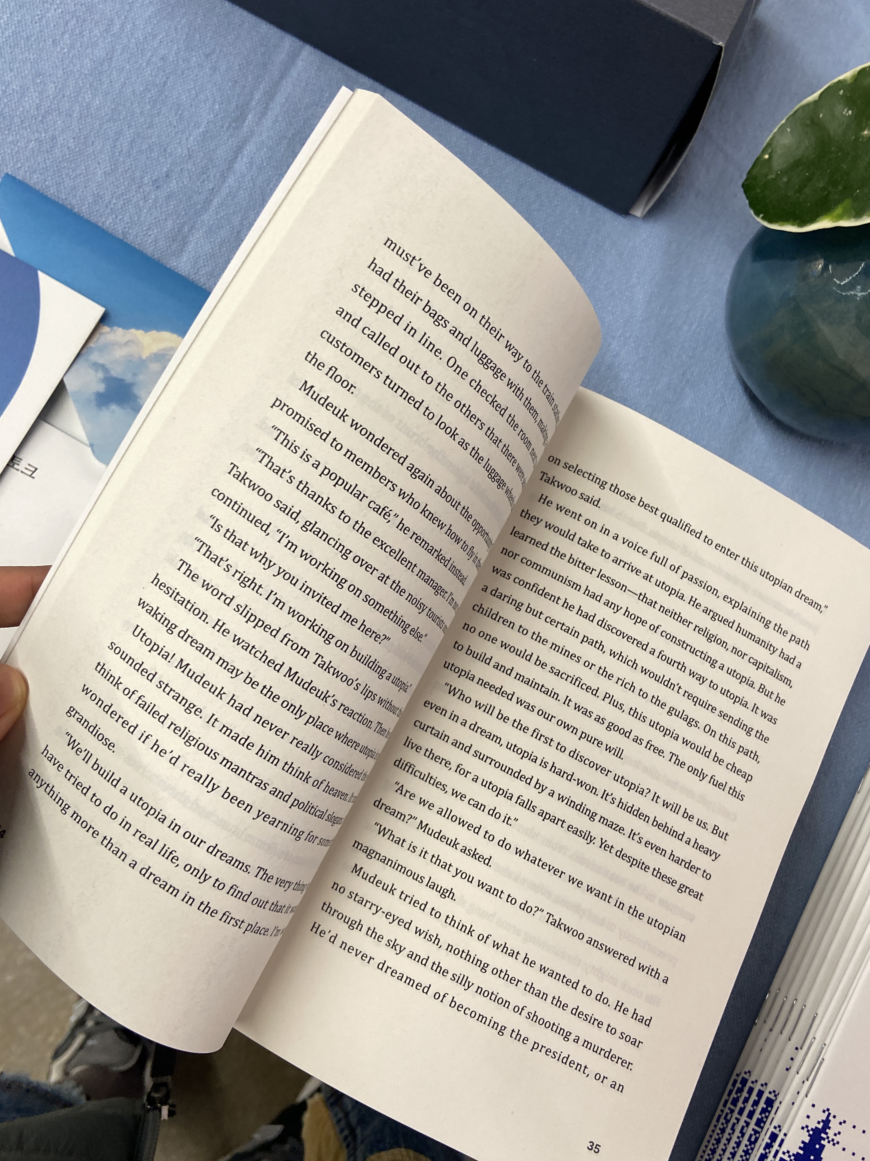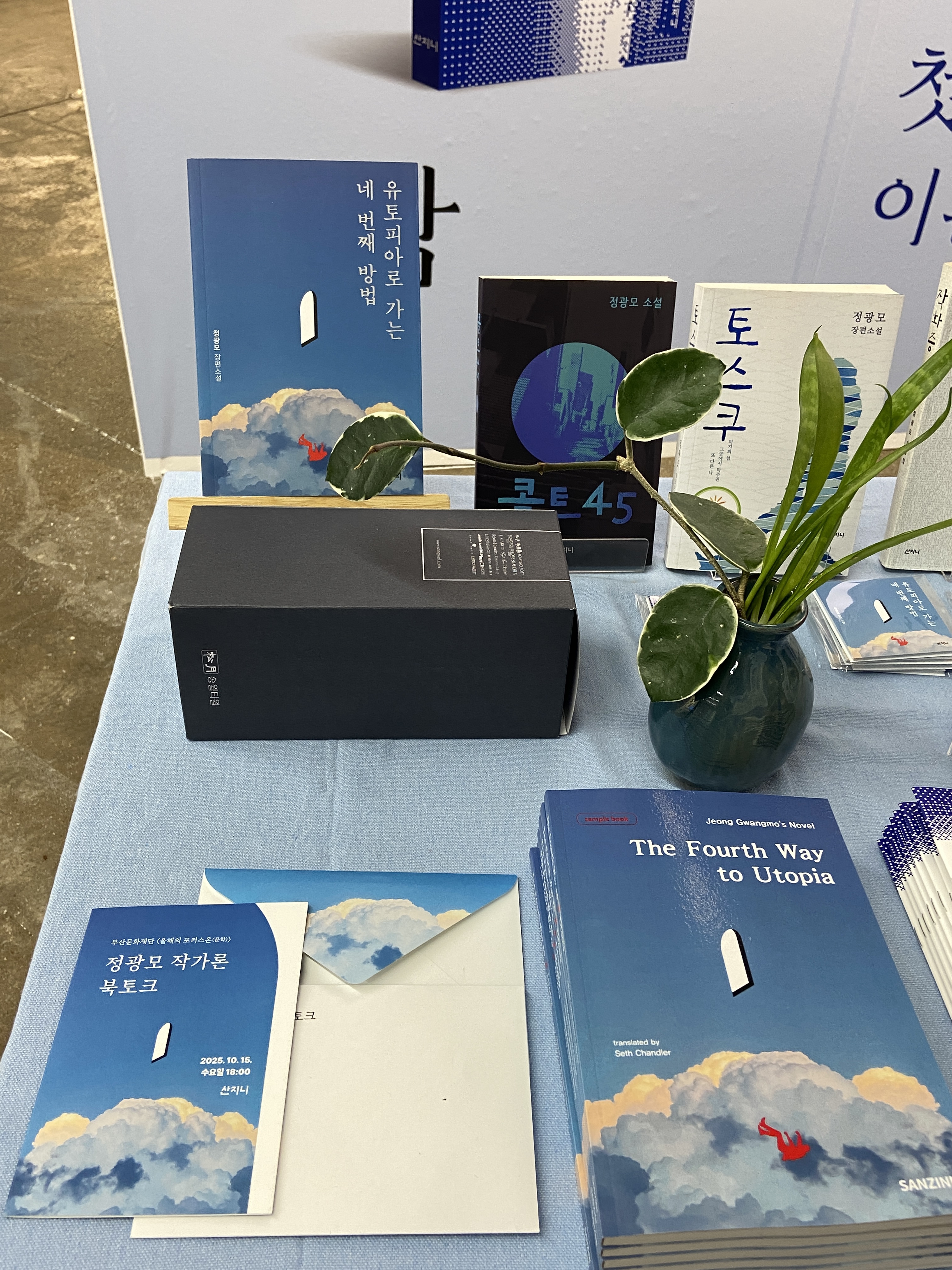 <유토피아로 가는 네 번째 방법> 영문 번역본과 더불어 포스트잇, 수건, 책자 등 올해 사업의 일환으로 여러 행사를 준비하며 만들었던 굿즈들도 구경할 수 있습니다.