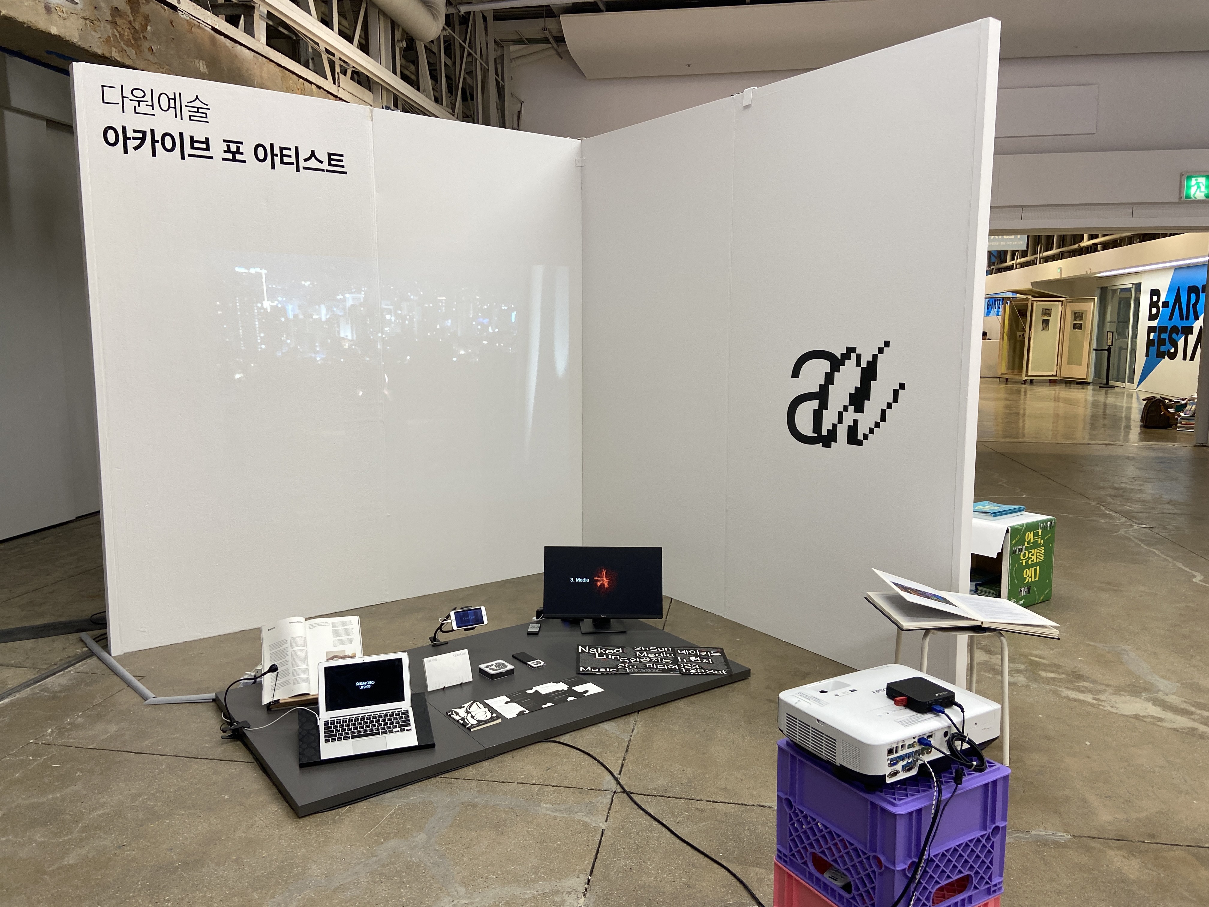 또 연극이나 다원예술 등 평소 많이 접하지 못한 분야의 예술들도 감상할 수 있었는데요. 연극 소품을 아주 가깝게 볼 수도 있고, 전자 기기를 활용한 낯선 예술의 세계에 빠져보기도 했습니다. 리플렛에 적혀 있듯이, 시각, 공연, 문학 등 장르의 경계를 넘나드는 결과물을 통해 부산 예술의 실험성과 독창성을 느낄 수 있었던 시간이었습니다!