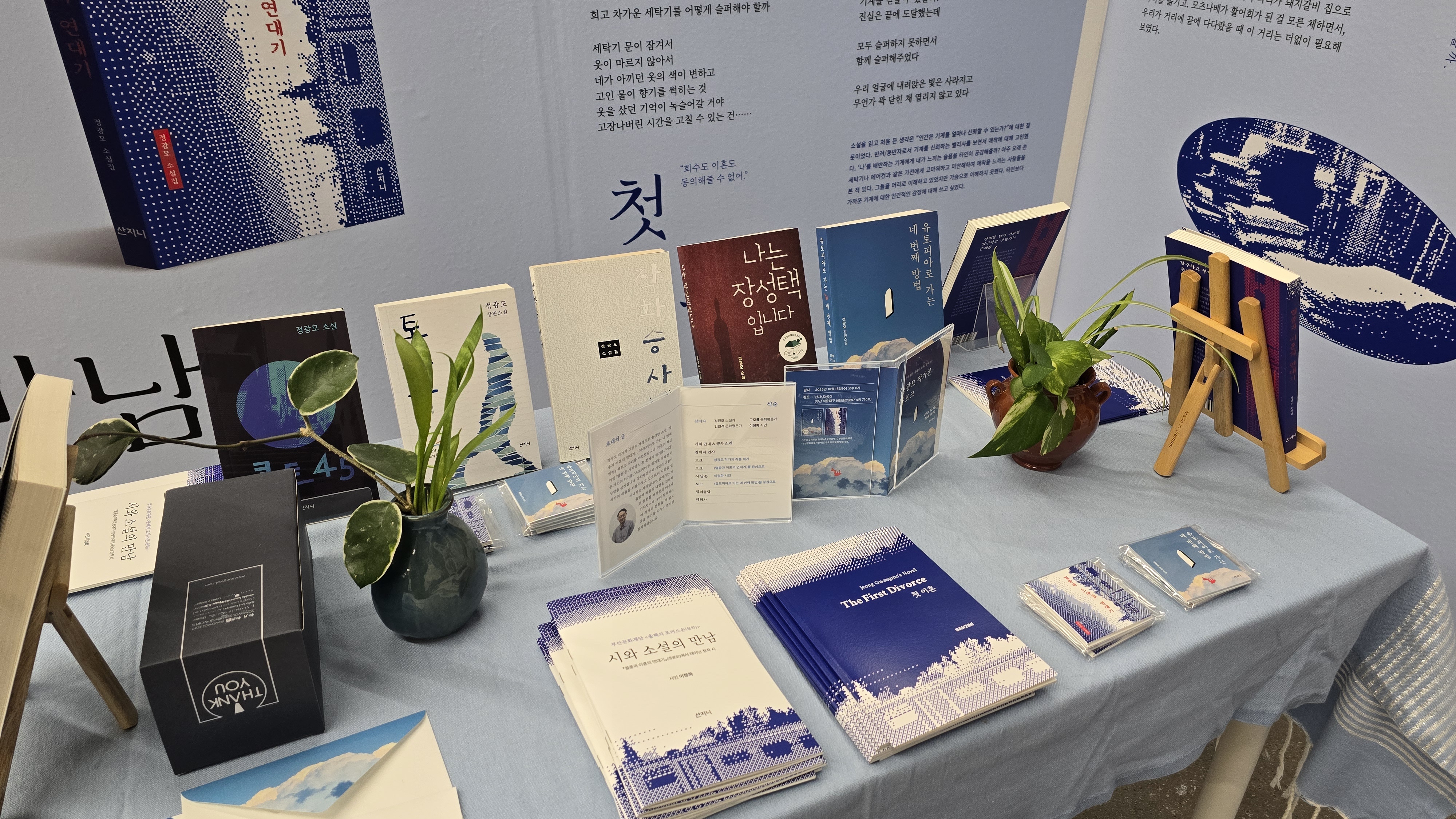 먼저 정광모 작가 전시 부스입니다. 해당 부스에서는 그간 출간했던 책들, 진행되었던 프로젝트, 작가론 등 정광모 작가의 세계를 둘러볼 수 있습니다.
