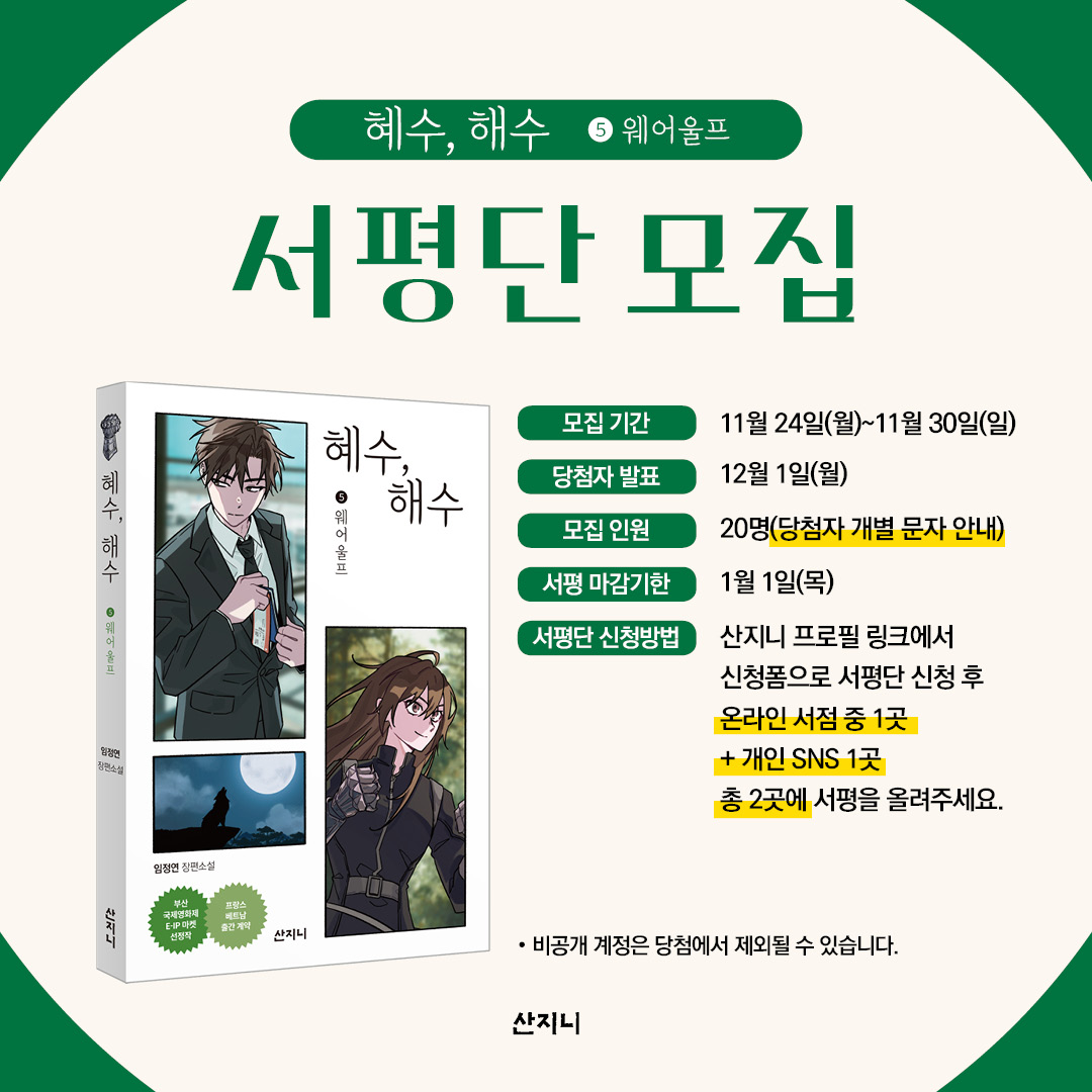 『혜수, 해수 5-웨어울프』서평단에 많은 관심 부탁드립니다