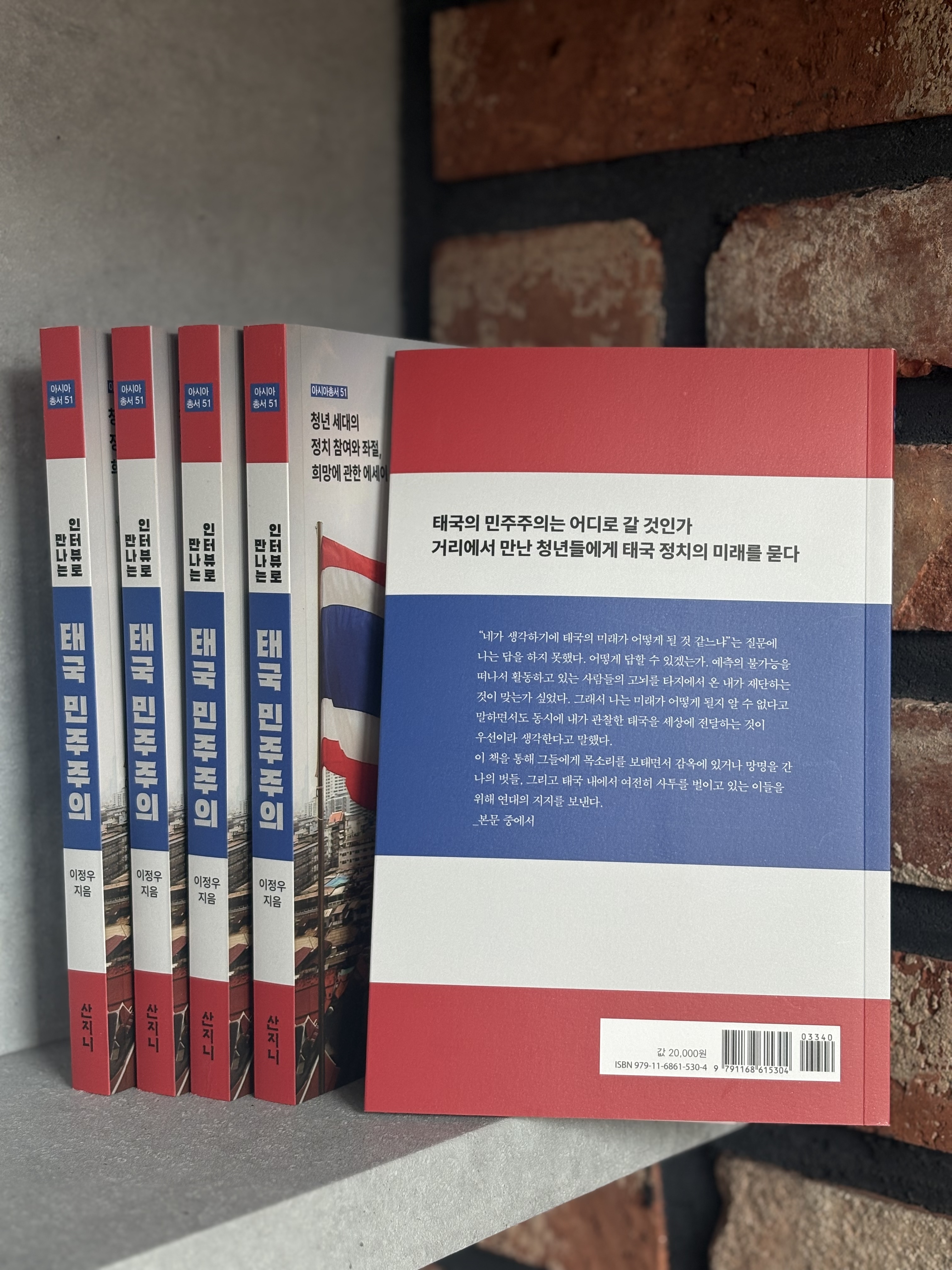 『인터뷰로 만나는 태국 민주주의』는 이러한 문제의식을 바탕으로 태국의 민주주의 운동과 청년 정치 세대의 목소리를 조명한 책이다. 저자 이정우는 2020년과 2024년, 태국 헌법재판소가 진보정당을 연달아 해산시킨 사건에 주목했으며 두 시기 시민 반응의 극명한 차이를 연구하기 위해 태국 청년들을 직접 인터뷰했다. 이 책은 태국 민주주의의 현주소와 미래, 청년들의 정치 참여 양상을 생생히 기록했다.