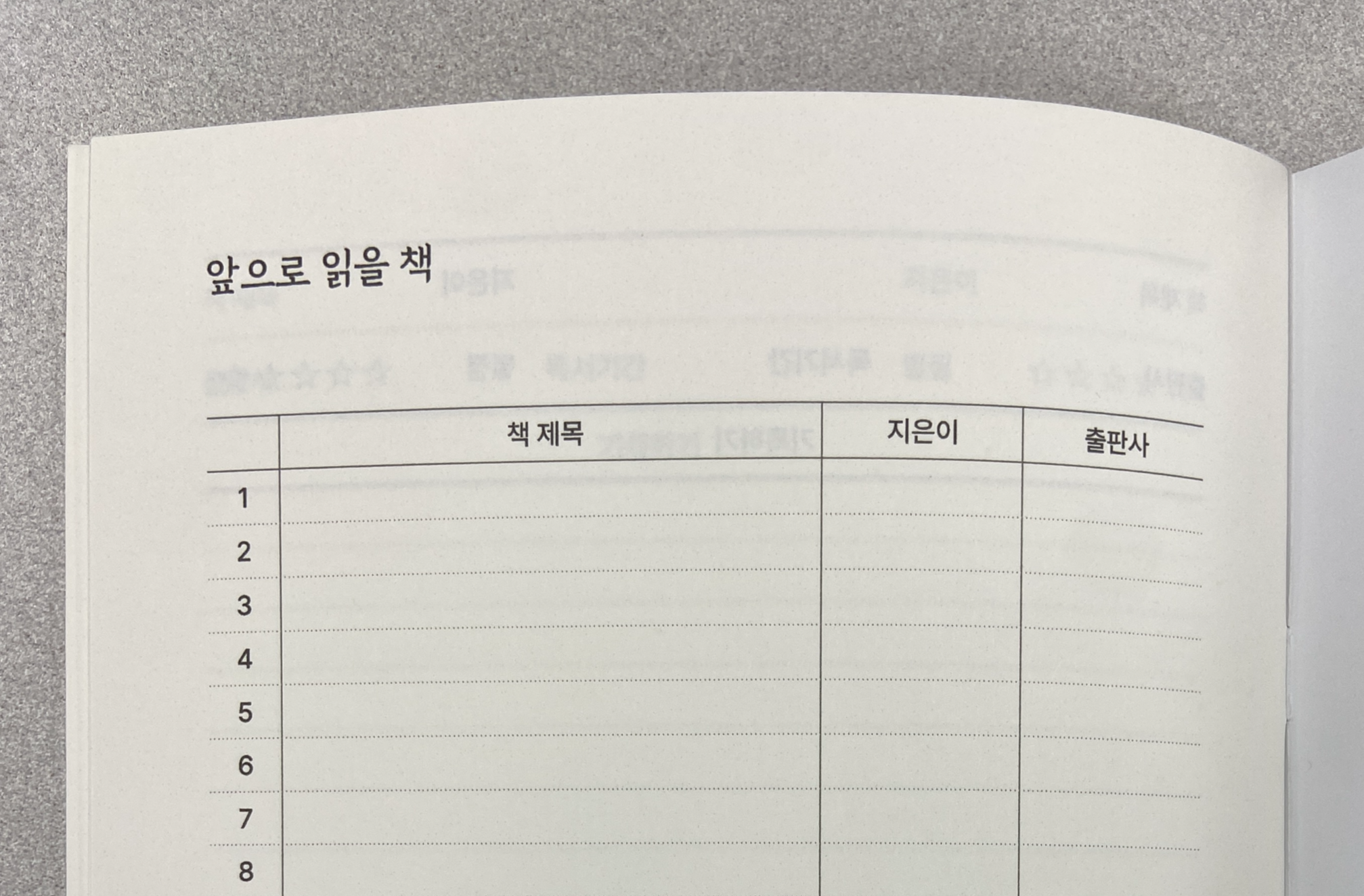 마지막 장에는 앞으로 읽고 싶은 책 리스트를 적는 공간이 따로 준비되어 있어