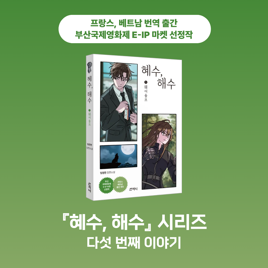 무당으로서 혜수가 점점 성장할수록, 삶과 죽음에 대한 생각은 깊어지고 인간과 영혼이 속한 서로 다른 세계가 혜수의 가슴을 무겁게 만듭니다. 혜수는 두 세계 사이에서 균형을 찾으며 스스로와 사랑하는 사람들을 지켜나갑니다. 대학생이 된 무당 혜수의 좌충우돌 성장 이야기가 궁금하다면, 지금 바로 『혜수, 해수 5-웨어울프』를 만나보세요!