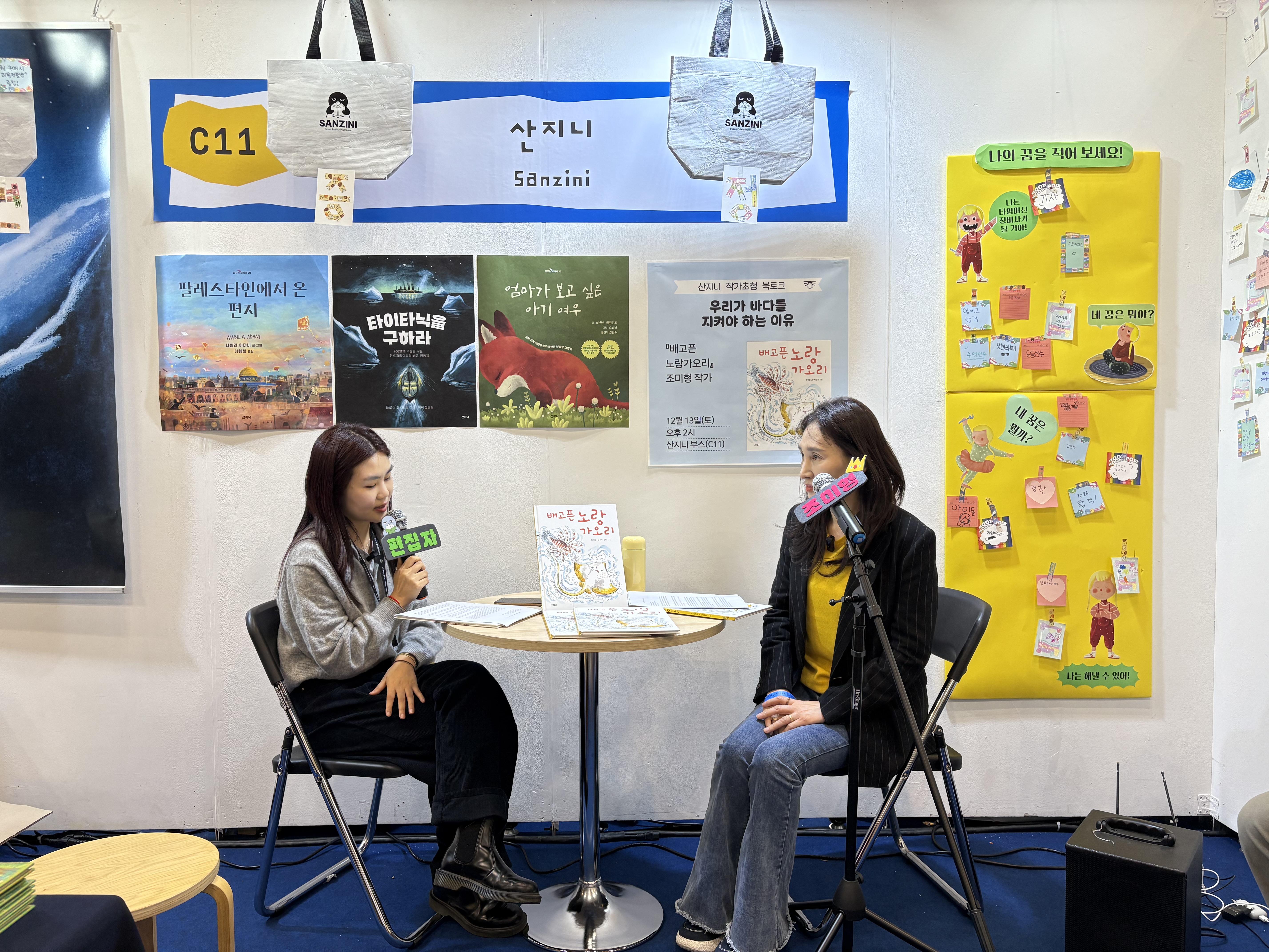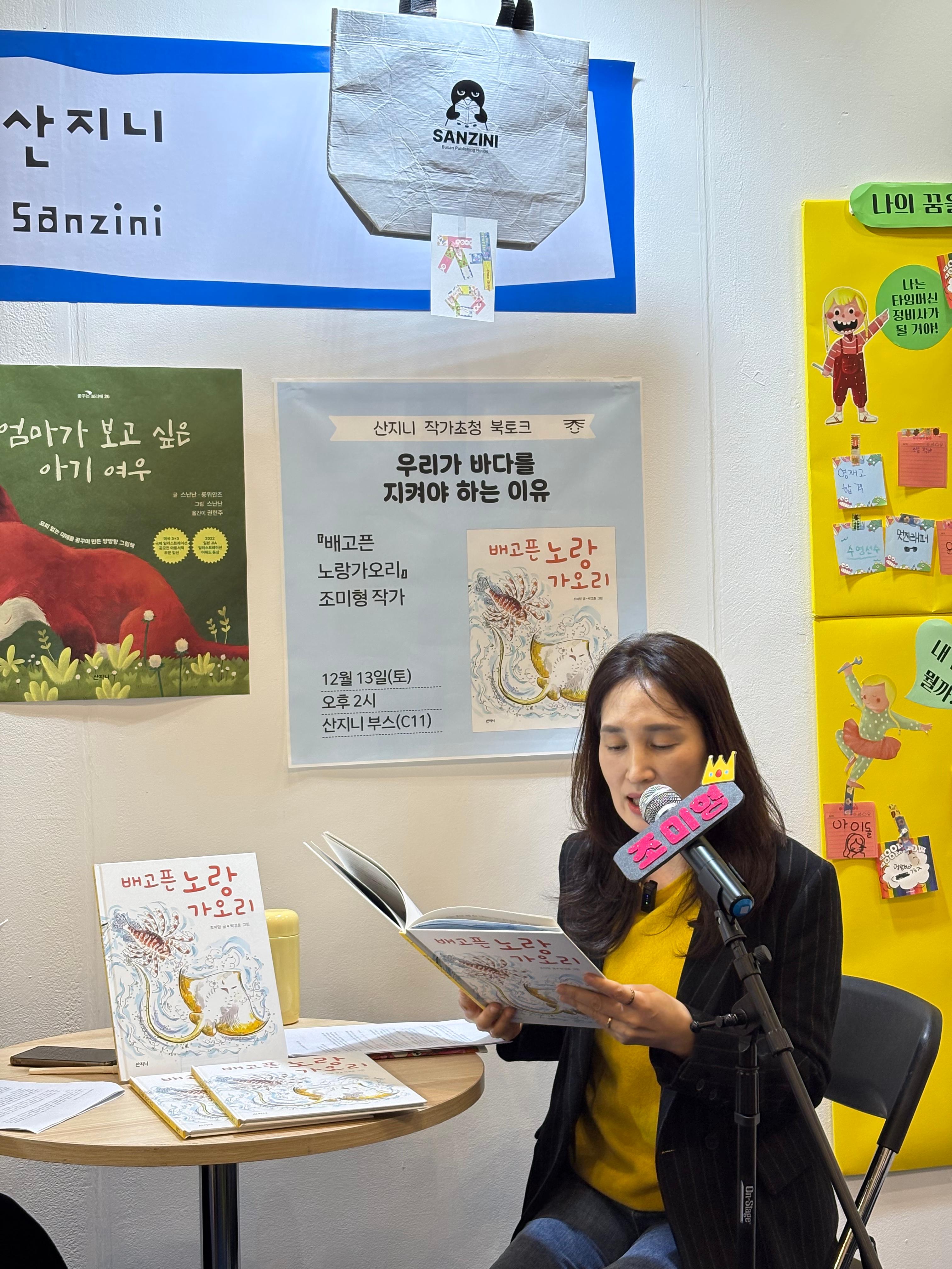 오후 2시에는 『배고픈 노랑가오리』의 조미형 작가와 함께 우리가 왜 바다를 지켜야 하는지 이야기를 나누었어요. 특히 마지막 질의응답 시간에 부산시 어린이기자단 친구들이 열정적으로 질문했던 게 오래도록 기억에 남네요.
