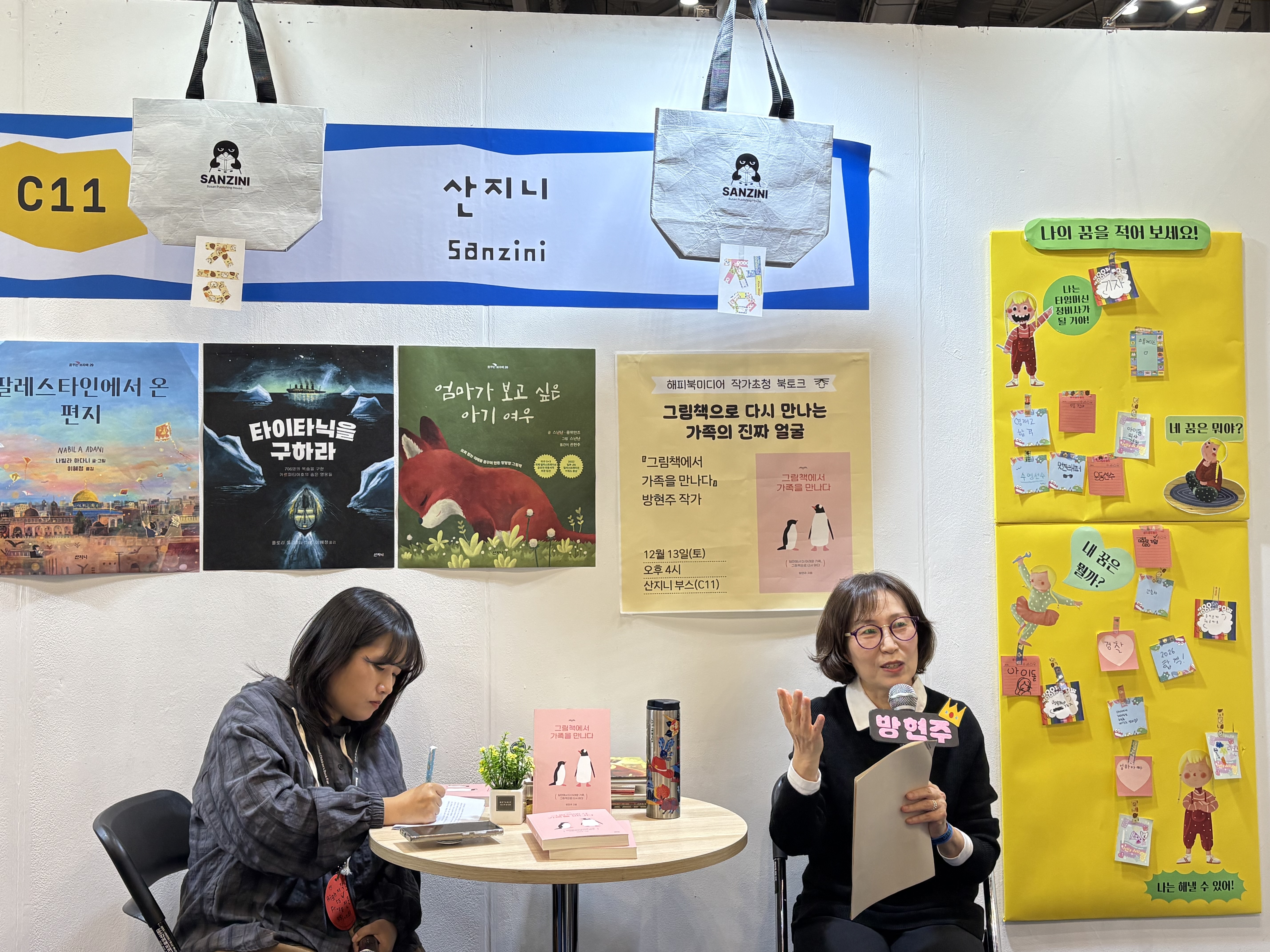 오후 4시에는 『그림책에서 가족을 만나다』의 방현주 작가가 그림책을 통해 가족을 새롭게 바라보는 방법을 소개해주었어요. 가족 단위 관객들이 함께해 더욱 따뜻하고 뜻깊은 시간이었습니다.