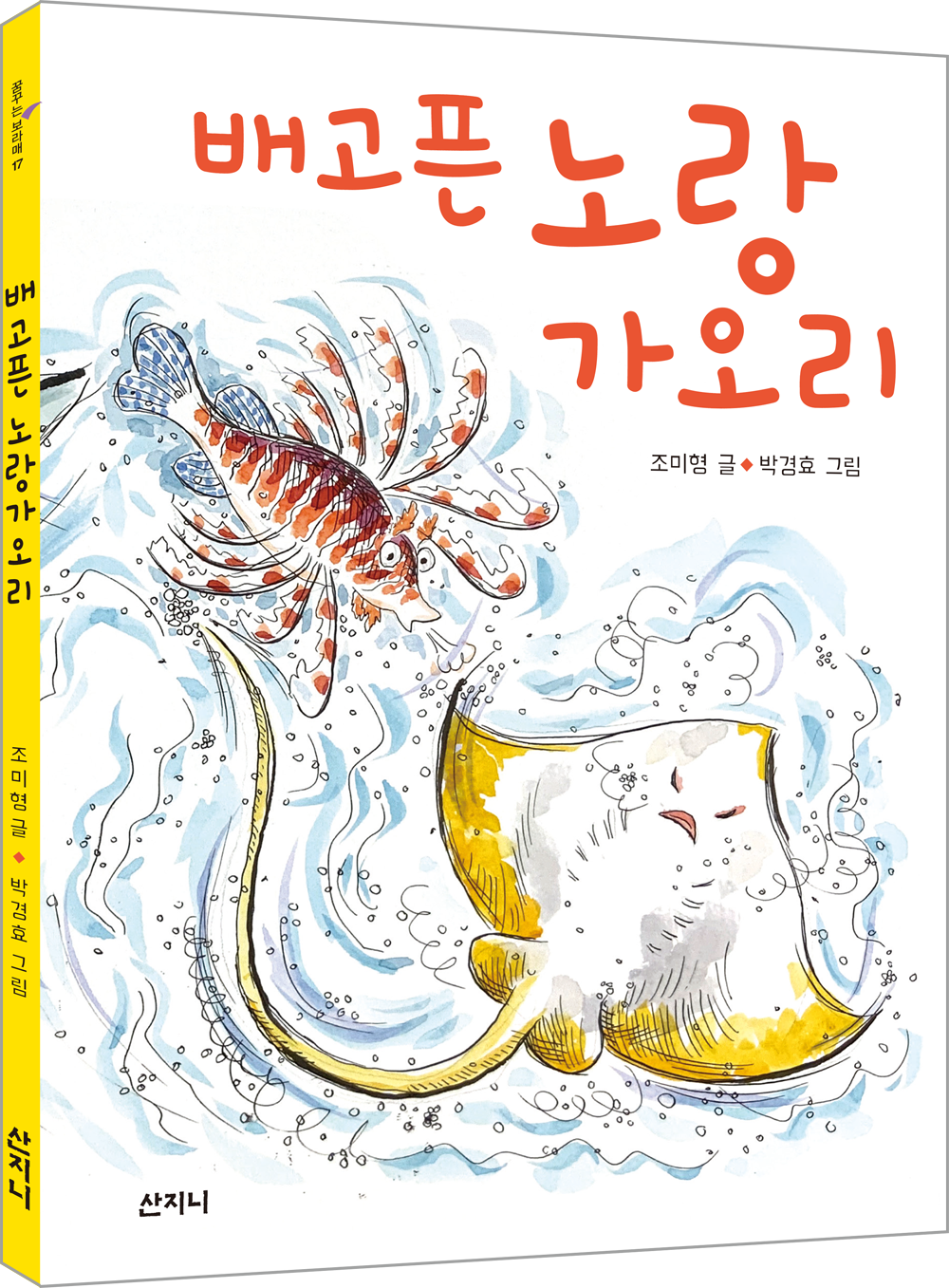 <배고픈 노랑가오리>는 <해오리 바다의 비밀>이라는 해양 모험 판타지 책 다음에 나온 책인데요. <해오리 바다의 비밀>은 해양 오염을 주제로 한 판타지 모험 동화입니다. 그 책을 가지고 초등학교에 북토크를 다니면서 아이들과 선생님으로부터 좀 더 이야기가 간결하고 그림이 많이 들어 있는 책을 써달라는 요청을 많이 받았습니다. 또 초등학교 1, 2학년 아이들과 함께 해양 환경 수업을 할 수 있으면 좋을 것 같다는 요청으로 우리가 살고 있는 부산 바다, 남해에 살고 있는 해양 동물 조사를 했죠. 그러다가 저도 처음으로 고래상어와 쏠배감펭, 노랑가오리라는 해양 생물들을 알게 되었고요. 그중에서 아이들이 가장 좋아하는 노랑가오리를 주인공으로 책을 쓰게 됐습니다.