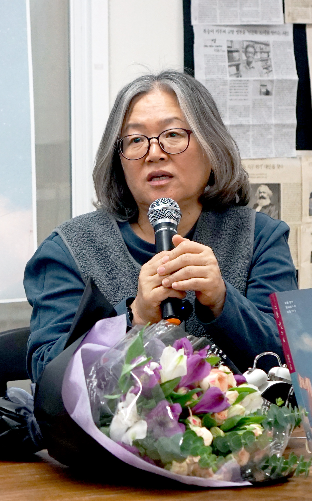 임회숙 소설가: 날이 너무 추운데 이렇게 와주셔서 너무 감사하고요. 생각보다 뭐라 그럴까요, 제 작품 얘기를 하는데도 수다 떠는 느낌이 들어서 저는 좋았습니다. 앉아 계신 분들이 지루하지 않으셨을까 모르겠네요. 제가 최근에 느낀 다가가야 된다는 그 생각대로 오늘 저에게 많은 분들이 다가와 주신 것 같습니다. 저도 앞으로 더 열심히 다가가는 소설을 쓰도록 노력하겠습니다. 감사합니다.