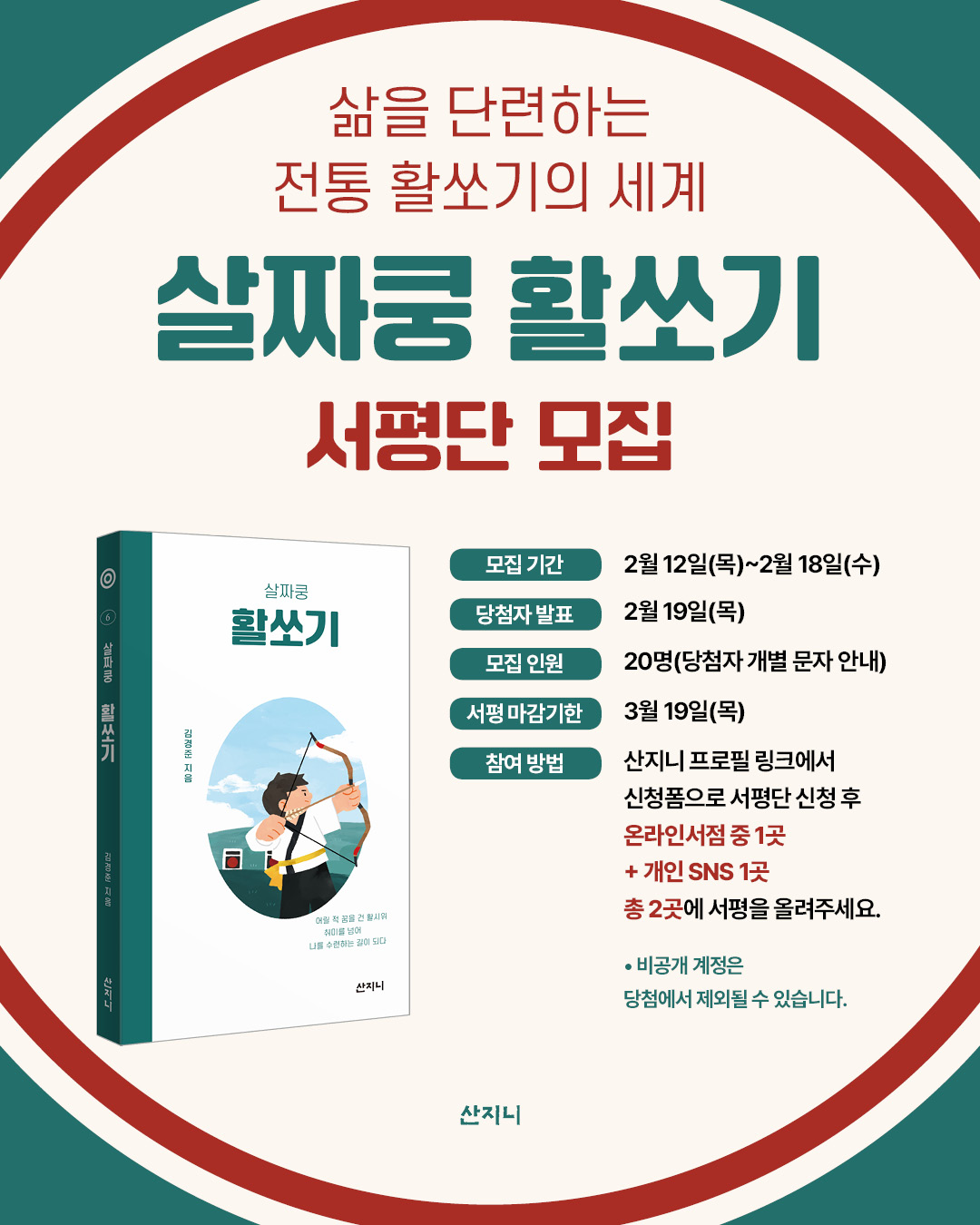 단순한 취미를 넘어 삶을 단련하는 전통 활쏘기의 세계가 궁금하다면, 지금 바로 서평단에 도전하세요!
